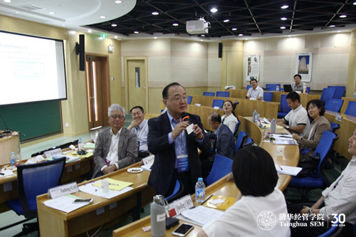 会议开幕式由清华经管学院EMC讲席教授、管理科学与工程系陈国青教授主持。清华经管学院副院长、创新创业与战略系高建教授代表本届研讨会的主办方致欢迎辞。韩国先进科技院大学商学院(KAIST Business School)前任院长Sung Joo Park教授、现任院长Minhi Hahn教授、日本庆应大学商学院(Keio Business School)院长Hirokazu Kono教授、清华经管学院创新创业与战略系高旭东教授分别主持相关专题讨论。