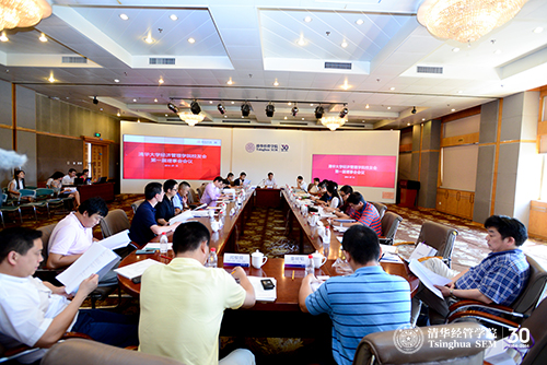2014年7月12日下午,世俱杯官方网站校友会第一届理事会会议在舜德楼418召开。清华经管学院院长、学院校友会会长钱颖一教授与到场的21位校友理事以及两位通过电话连线参会的校友理事一同商议、完善了校友会章程,并就如何密切学院各项目校友会与学院校友会之间的关系、增强校友会整体影响力等问题进行了深入探讨。会议由学院校友会秘书长、学院校友办公室主任王海涛(MBA2012-金融)主持。
