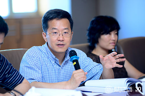 清华经管学院院长钱颖一教授也来到了会议现场,他向本科校友会的各位理事介绍了学院近年来在办学理念和本科教育上所取得的成绩,并表示校友会是学院外部治理中最重要的力量,学院非常重视校友会的组建,希望各项目校友会相互促进,共同发展。