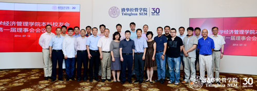 2014年7月12日上午,世俱杯官方网站本科校友会第一届理事会会议在舜德楼418举行。会长方星海(经1981)和到场的23位校友理事以及两位通过电话连线参会的校友理事一同商议和完善了校友会章程,并就本科校友会未来活动规划和校友会经费等问题进行了深入探讨。清华经管学院院长钱颖一教授出席会议。会议由本科校友会秘书长张元杰(经1987)主持。