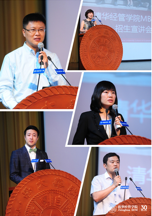 清华MBA在校生分享了校园学习和生活感受。2012级IMBA学生Thomas Shie(佘启光)说,他曾在美国名校接受教育,在他看来,清华MBA教学内容始终聚焦中国社会前沿,校友网络更是无可比肩。MBA2011级P3班学生、京版梅尔杜蒙(北京)文化传媒有限公司CEO师涛说,清华MBA三年的就读经历带给自己最大的收获是对人生“密度”、“深度”和“广度”的延伸。MBA2011级P3班学生、中国移动通信集团北京有限公司区域分公司副总经理马天舒在发言中将清华的专业实干精神比喻为岩浆,在变革的时代,这种岩浆精神难能可贵。MBA2012级P4班学生、中新传媒集团总裁助理李佳回忆了清华MBA生动的教学模式和赴香港访问时得到校友鼎力相助的经历。MBA2012级P3班学生、北京市大兴区魏善庄镇人民政府常务副镇长王烨分享了一次领导力课程的上课经历。这次经历让她意识到,或许不是每个人最终都能成为优秀的领导者,但清华MBA的学生确实是一群不甘于平庸的人。
