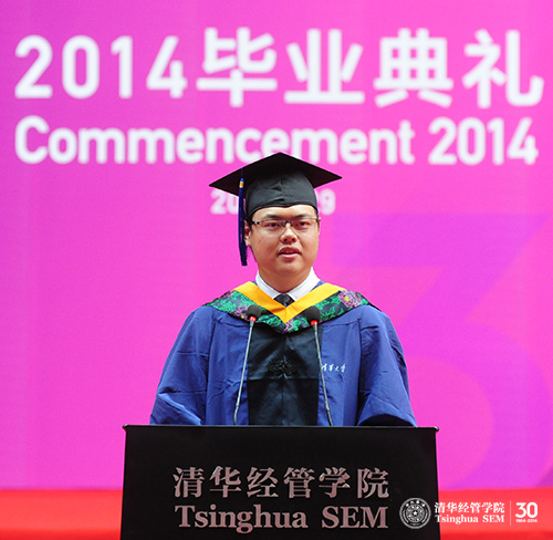 习近平总书记在五四重要讲话中强调,青年是标志时代的最灵敏的晴雨表,时代的责任赋予青年,时代的光荣属于青年。今天,又有一批清华经管人离开校园,即将开启一段崭新的人生篇章。功崇惟志,业广为勤。我相信,不论我们选择在哪一个领域开始自己的职业生涯,只要我们能够时刻牢记清华经管人经世济民的使命,勇敢担当起时代赋予的责任,不忘初心,追求卓越,就一定能够收获有信念、有梦想、有奋斗、有奉献的人生历程,就一定能留下充实、温暖、持久、无悔的青春回忆,就一定能够让每个经管人的力量汇成一股洪流,让时代,听到清华经管人的声音,让民族,看到清华经管人的贡献,让历史铭记清华经管人的辉煌。
