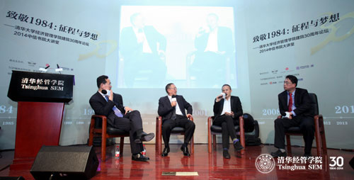 学院举办的两场企业家论坛分别以“致敬1984:征程与梦想”和“启程2014:变革与远见”为主题,邀请的是在1984年创业的柳传志和王石,以及来自国企和民企的宁高宁和郭广昌,与师生们分享他们在创业和企业管理中的经验和人生感悟。