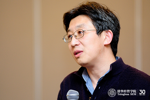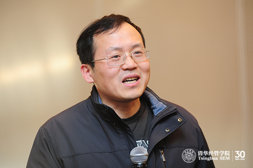 院党委副书记焦捷教授最先发言。他说,“陈老师不但是我的老师,还是我老师的老师。”陈章武老师对回到清华经管学院工作的焦捷给予了不少帮助和指导。在焦捷看来,陈老师对学生的教育,不但体现在教书层面,而且体现在为学和做人上。“陈老师对于经管学院的建设和发展做出了不可磨灭的贡献,可以说清华经管学院发展到今天,离不开陈老师的贡献。”
