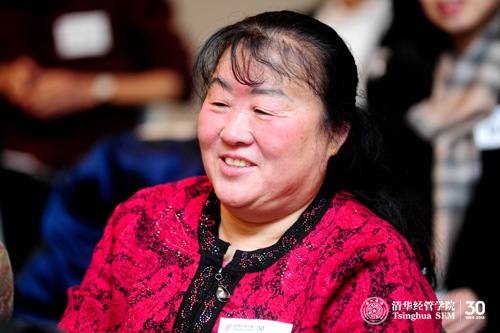 当林玉霞老师起身发言时,现场的所有校友和同学,给予了她最热烈的掌声。林玉霞老师在自1989年加入清华经管学院后,曾多年从事学生工作组组长的工作,深受学生们欢迎。很多校友都回忆说,那时候,每次大家献血过后,林老师就会义务为他们炖鸡汤滋补身体。林老师对这份对学生的关心与爱护,赢得了大家的尊崇与爱戴。她祝愿同学们事业有成、身体健康、家庭愉快。
