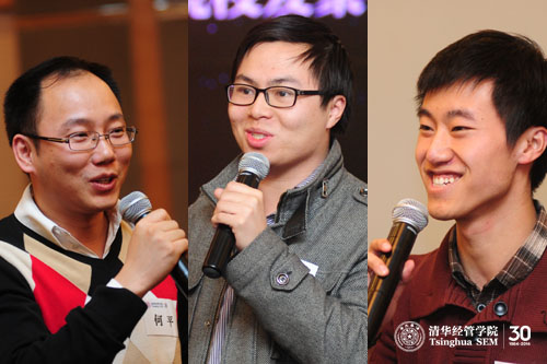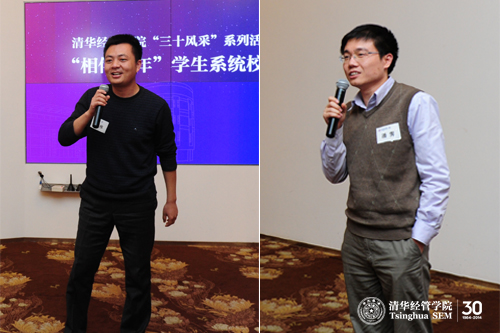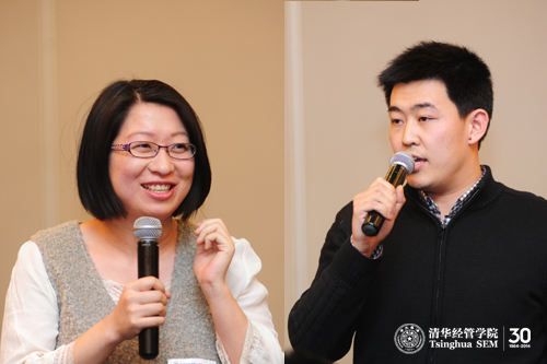 潘霁(经1997/经博2001)和谭伟(经1998/经博2002)是从2000年后开始从事学生工作的,他们为大家分享了自己在新时期的学生工作经历和感悟。潘霁认为辅导员工作让他更多地接触到学院里的老师和同学,这对他的职业规划乃至整个人生来说都有很大的影响。“这些我所经历的事情和获得的经验让我变得更加充实,也让我的生活变得更加快乐。”谭伟则讲到了在非典时期,作为学生干部肩头所承担的沉甸甸的责任。而这种责任感、使命感也正是清华精神的一种折射和写照。