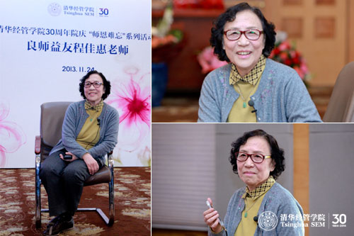 2013年11月24日,清华经管学院30周年院庆“师恩难忘”系列活动——“良师益友程佳惠老师”座谈会在舜德楼418举行。清华经管学院党委书记杨斌教授、副院长高建教授以及党委副书记焦捷教授出席了本次座谈会。活动由董海涛校友(经1980)主持,来自社会各界的40余名程佳惠老师的学生和10余名本硕博在校生参加。程佳惠老师也亲临现场,与在场的同学一起共同追忆美好时光。