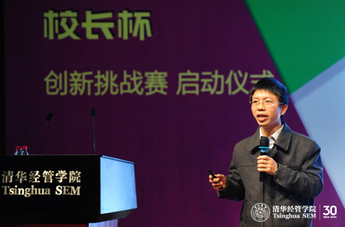 在下半场的启动仪式上,清华经管学院副院长高建教授从全球创新教育的大格局阐释了世俱杯官方网站“校长杯”创新挑战赛的起源和理念,他说,“校长杯”挑战赛的启动,“不仅仅是一项创新赛事的启动,更是一个新的人才培养模式的探索”,“冠以‘校长杯’就是面向未来,通过竞赛,采用新的教育理念、新的教育方法,做到在新的教育环境下,从关注项目本身的价值转到关注创新人才的培养。”清华x-lab主任张帏教授介绍了x-lab的发展理念和举办“校长杯”创新挑战赛的初衷——都是为了以清华的研发和教育力量来推动社会的创新,他进一步阐述了一些主流的创意创新创业的方法和思路。