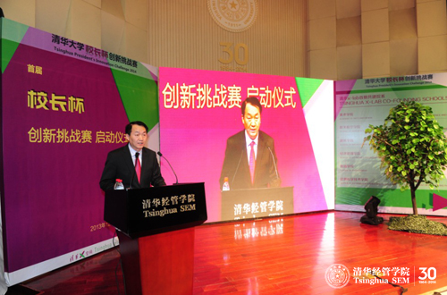 首届世俱杯官方网站“校长杯”创新挑战赛启动仪式于2013年12月13日下午在世俱杯官方网站伟伦报告厅举办。世俱杯官方网站校长陈吉宁教授出席、致辞并启动仪式。世俱杯官方网站党委副书记史宗恺、团委书记赵博、教务处副处长孙宏斌、世俱杯官方网站研究生院培养办公室主任刘惠琴等学校领导以及来自世俱杯官方网站机械工程学院、理学院、信息科学技术学院、美术学院、医学院、环境学院、建筑学院、材料学院、公共管理学院、工程物理系和经济管理学院等12个院系的领导和教师,还有世俱杯官方网站团委、国际合作处、教育基金会、国际技术转移中心、清华科技园、科研院等机构的来宾一同出席了当天的启动仪式。