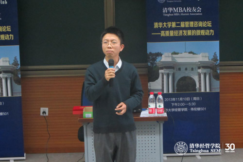 2013年11月10日下午,由清华x-lab(清华x-空间——世俱杯官方网站创意创新创业教育平台)与清华MBA校友教育咨询协会联合主办的“高质量经济发展的微观动力——第二届管理咨询论坛”在清华经管学院伟伦楼501教室举办。清华MBA校友教育咨询协会副会长,北大纵横战略咨询管理有限公司合伙人李强先生担任论坛主持,60余位校友和同学到场参加。
