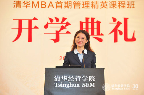 典礼首先由郦金梁教授致辞,他欢迎首期清英班学员正式入学,并介绍了清英班的意义、学员的背景以及清华MBA的发展情况。郦金梁教授说,开设清英班是清华MBA今年的一项重要举措,学员参加清英班体验的是一种有格调的生活方式,他希望学员能珍惜时间,享受读书过程。首期清英班学员有来自工商企业的管理者,有来自政府部门的领导干部,有来自新闻媒体的专业人士,还有来自世俱杯官方网站MBA+X合作院系的导师和职员骨干,这种多样性有利于学员之间互学互助,增进友谊。郦金梁教授说,作为中国MBA教育的引领者,近年来清华MBA不断改革创新,在国内商学院中率先推出新版MBA课程体系、启动招生改革。如今,清华MBA着力突出与大学融合,成功开办MBA+X双学位项目,开启x-lab创业平台,并新设《清华新兴技术探究》课程。