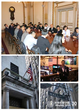2013年9月29日至10月5日,清华MBA《全球资本市场导论》课程美国模块在纽约、波士顿两地展开。在清华经管学院副院长郦金梁教授的带领下,31名清华MBA学生和校友走访参观了彭博集团总部、美联储纽约银行、纽约证券交易所、中信证券美国公司、花旗银行等机构,并与有关高层管理人员座谈。模块还包括在美国金融博物馆、西点军校和哈佛大学举办的四堂定制课程和其他定制活动。