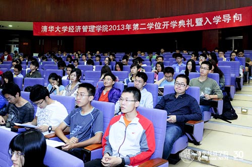 2013年9月22日,清华经管学院2013年第二学位开学典礼暨入学导向活动在伟伦楼报告厅举行,教学办公室主任朱玉杰教授、经济系副系主任钟笑寒教授、经济学第二学位学术协调人马弘教授、管理学第二学位学术协调人胡左浩教授及各位班主任老师出席了活动。活动分两场进行,第一场是经济学第二学位开学典礼暨入学导向活动,第二场是管理学第二学位开学典礼暨入学导向活动。今年,管理学第二学位开始恢复招生。