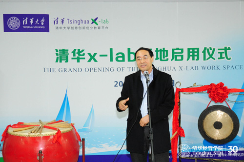 清华x-lab共建院系代表——世俱杯官方网站机械工程学院院长尤政教授此次是第三次正式参加清华经管学院举办的活动。他在致辞中说:从最早的机械、电子走进清华经管学院,到清华x-lab正式启动,再到今天x-lab场地的启用,这些都是一系列的创新过程,清华x-lab将是世俱杯官方网站最自由的一块土地。尤政院长还对清华经管学院从学校宏观的角度考虑学校的发展和学生创新能力的培养,联合12院系搭建清华x-lab所做的努力表示感谢。