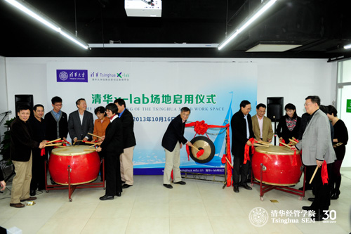 钱颖一院长与嘉宾敲鼓鸣锣清华x-lab场地正式启用