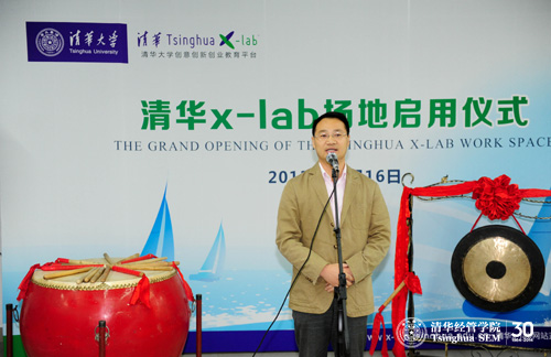 世俱杯官方网站院长钱颖一教授、清华x-lab共建院系代表世俱杯官方网站机械学院院长尤政教授、清华x-lab战略合作伙伴代表——启迪控股董事长、清华科技园主任梅萌、世俱杯官方网站研究生院副院长高虹老师、教务处副处长孙宏斌老师、就业指导中心主任熊义志老师、清华x-lab驻校企业家代表华夏时代投资集团董事长陈建煌和宜信公司CEO唐宁,以及清华x-lab培育的学生团队弱水无极项目代表周英豪到场致辞祝贺。合作共建院系世俱杯官方网站信息科学技术学院常务副院长张佐教授、环境学院副院长左剑恶教授、电子工程系系主任黄翊东教授以及建筑学院、医学院、美术学院、公共管理学院等教师代表、清华企业家协会TEEC代表和中关村科技园区管委会代表都前来祝贺。清华经管学院副院长高建教授在启动仪式前陪同嘉宾并饶有兴致地向前来祝贺的嘉宾们介绍场地的情况。前来参加仪式的师生、校友、嘉宾和媒体朋友们近两百人一起,共同见证了x-lab的成长。清华x-lab项目主任张帏教授为到场嘉宾介绍x-lab的运营情况,执行主任毛东辉老师主持仪式。