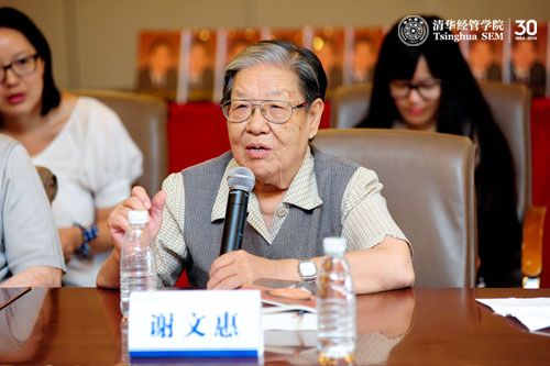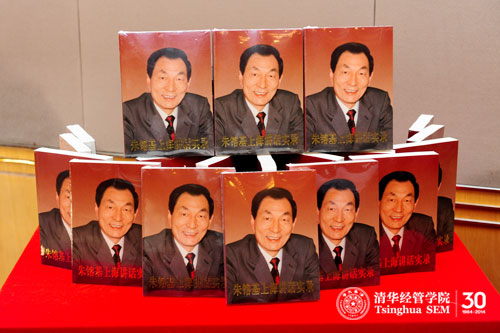 座谈会上,清华经管学院钱颖一教授首先发言。他说,此次在清华经管学院举行清华师生学习《朱镕基上海讲话实录》座谈会,是继2009年9月举行的学习《朱镕基答记者问》座谈会、2011年9月举行的学习《朱镕基讲话实录》座谈会之后,学院举行的第三次学习朱镕基院长新书的座谈会。从1984年经管学院建院开始,朱镕基教授担任首任院长。后来他调任上海市市长,仍然担任学院院长,指导博士生。之后回到北京担任国务院领导,在此期间他也一直担任清华经管学院的院长,直到2001年。从2000年开始至今,他一直担任学院顾问委员会的名誉主席。在近30年中,朱镕基院长与清华经管学院结下不解之缘,学院师生对老院长感情深厚。