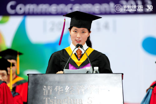 不知道同学们在收到有钱院长签名的中英文毕业典礼邀请信的时候,在步入刚才的毕业酒会会场的时候,有没有像我一样感到“高端大气上档次”。这种邀请了亲友和重量级演讲嘉宾的毕业典礼,也是经双带给我们的惊喜之一吧。