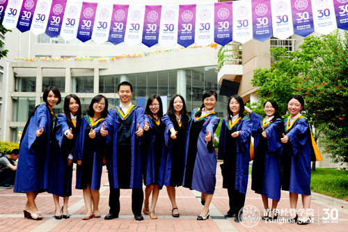 毕业生招待酒会是今年学院系列毕业庆祝活动的一个新亮点,它突破了以往传统的室内活动,将庆典延展到户外进行,同时给了毕业生之间以及和师生们更多的空间彼此问候、交流和相互祝贺。活动当天,伟伦楼、舜德楼的大厅以及两楼之间的中庭被气球、彩带、合影背景板、凉亭等装饰一新,在绿草的映衬下体现出节日般的喜庆气氛。