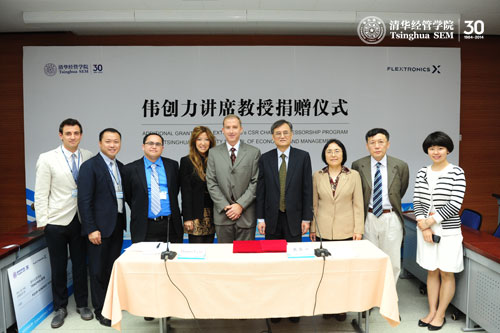 为助力学院师资建设,3年间,伟创力集团已累计捐赠140万美元用于在清华经管学院设立伟创力讲席教授基金、开设企业社会责任研究项目并捐赠伟创力教室。