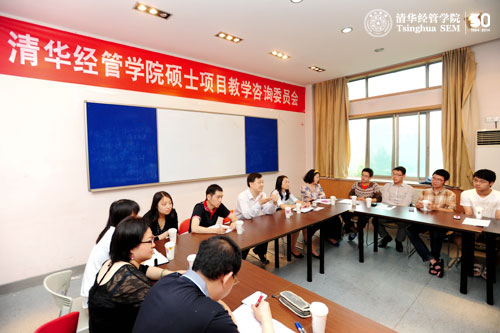 “我们的硕士项目设置虽然是培养专业技能,但定位不仅是职能性的。从长远看,同学们应该对专业职能有深刻理解,还要具备综合管理能力,所以现在既要学好专业技能,还要兼顾全面素质的培养。”郦金梁提到了对硕士项目毕业生的期待,“同学们既要有全球视野,又要立足中国根基,还要继承和发扬清华品格。”郦金梁鼓励同学们多观察思考,并在发现问题、遇到困难后及时与学院沟通,行使教学咨询委员的职责。随后委员会的学生代表们与在座老师就教学与培养等问题进行了深入有效的讨论与沟通。