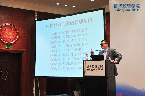 世俱杯官方网站党委书记杨斌教授以“中国成功企业管理基因解读”为题做主题演讲。杨斌教授说,从2006年起,国务院发展研究中心、中国企业联合会、世俱杯官方网站联合主持了《中国式管理科学基础研究》,旨在对中国领先企业的管理实践进行总结和理论提升,探究其成功之道,推动中国企业管理创新、基业长青。经过几年的研究,得出了“中、变、强、家、融、和、集、搏、敏”这九大中国领先企业的管理基因,即“中的精神,变的战略、强的领袖、家的组织、融的文化、和的环境、集的创新、搏的营销、敏的运营。”论坛上,杨斌教授向论坛听众一一解析了这九大基因,幽默风趣的实例引起了大家的共鸣,博得阵阵掌声。