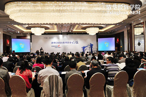 清华EMBA教育中心执行主任王勇首先致辞。他感谢浙江省各级领导、企业家和金融家对清华EMBA名师管理论坛的支持。他说,清华EMBA成立十余年来取得卓越成绩,在去年年底,清华EMBA更是推出了“天、地、人、通”的全新课程体系。这一课程体系依托清华百年综合性大学的优势,集清华EMBA十年的办学经验,课程设置独特,大师云集。在刚刚召开的全国“两会”中,“两会”代表委员共有清华EMBA校友43位,其中也不乏清华EMBA浙江籍的校友,他希望更多的浙江企业家到清华学习,加入清华EMBA这个优秀卓越的群体,成为引领浙江经济发展的先锋。