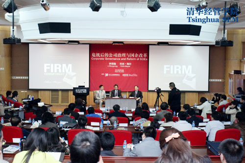 2013年3月28日,危机后的公司治理与国企改革论坛在清华经管学院举行。全国政协经济委员会副主任、世俱杯官方网站兼职教授、国务院国有资产监督管理委员会首任主任李荣融与牛津大学金融学教授Colin Mayer从企业运营和监管的角度与200余位来自企业和学界的代表共同探讨了危机后的公司治理和国企改革。论坛由清华经管学院金融系黄张凯教授主持,世俱杯官方网站公司治理研究中心副主任王琨,清华经管学院高管培训中心常务副主任刘燕欣出席了此次活动。