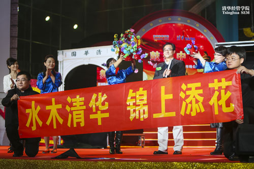 合唱、朗诵、情景剧等,如果你还可以将这些与清华EMBA、高管联系起来,那接下来的踢踏舞绝对是一个惊喜。脱下笔挺的西服,暂时抛开各种头衔,他们洒脱随性,释放着别样的光芒,“永远的清华情”、“永远的清华”和“永远的11-A班”是他们最后打出的条幅,《红色激情》意味深长。