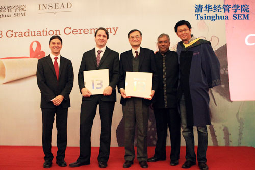 2013年1月15日,清华EMBA国际项目(TIEMBA)2013届毕业典礼在清华经管学院舜德楼多功能厅举行,48位来自世界各地的同学完成了为期18个月的学习,顺利毕业。清华经管学院院长钱颖一、英士(INSEAD)国际商学院代理院长Peter Zemsky、清华经管学院EMBA教育中心执行主任王勇、英士(INSEAD)国际商学院高级学位项目主任Kristen Lynas以及TIEMBA项目的第一届校友Joshua Halpern等出席了毕业典礼。很多同学的家人也来到现场共同见证这一难忘时刻。