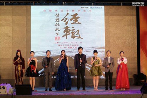 2012年12月22日,清华经管学院冬情学生节晚会“经辙”在清华综合体育馆上演,世俱杯官方网站党委副书记史宗恺、校团委书记赵博、经管学院院长钱颖一、副院长白重恩、经管学院党委副书记焦捷、经管学院学生工作组组长何平出席了晚会。本次晚会还首次邀请到了70余位企业雇主的领导嘉宾与众多媒体记者前来观看,并将学院本科在读的两位奥运冠军肖钦和易思玲请到了晚会现场,盛况空前。
