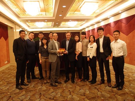 每学期,领导力俱乐部都会组织2到3次晚宴形式的与企业家的深度交流。2012年的顾问委员会定于10月24日召开,此前一个月,俱乐部就已经开始了与委员晚宴交流的规划。经过十多天的筹备,最终伟创力集团CEO迈克尔•迈克纳曼(Mike McNamara)和哈里森街资本公司主席、CEO克里斯多夫•高尔文(Christopher Galvin)确认将在他们下榻的中国大饭店与同学们共进晚餐。俱乐部的成员们很是兴奋,特地在交流活动前对晚宴嘉宾进行了深入的了解,也针对他们各自的经历及所在领域准备了问题。
