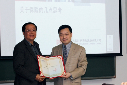 2012年12月20日,中国人民财产保险股份有限公司执行董事、执行副总裁王和在“金融硕士行业导师论坛”上做了题为“有关保险业几点思考”的演讲。经管学院副院长郦金梁教授代表经管学院为王和及另一特邀嘉宾——清华校友陈东辉颁发了行业导师聘用证书。金融系陈秉正教授以及保险专业的多位老师也出席了活动。
