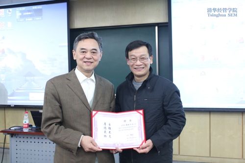 会计专业硕士项目主任罗玫教授致开幕词后,清华经管学院副院长夏冬林教授对潘晓江博士的经历和学术研究领域进行了介绍:早在八十年代初,潘博士就开始翻译介绍国际会计准则,对国际会计准则的了解非常深入和透彻,是国内最早研究国际会计准则的专家之一;其次,潘博士对会计理论的研究有非常独到之处,他从历史和哲学角度来研究会计问题,哲学是学问当中的学问,而用哲学去研究会计问题是对会计理论本身的深刻理解。随后,夏冬林教授为潘博士颁发了世俱杯官方网站会计专业硕士资深校友导师的聘书。