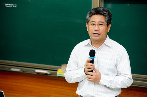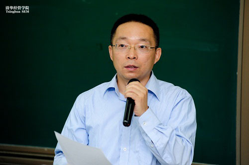 白重恩教授首先代表学院欢迎校友导师出席聘任仪式,并介绍了经管学院近年来本科教育改革的情况,特别强调了“通识教育、个性发展”的培养理念。白重恩教授认为大学推出的“领军计划”为经管学院贯彻其本科培养理念提供了新的机会。经管学院一直重视学生的社会实践,努力为学生提供接触社会的机会,校友导师可以与院内教师形成互补,帮助本科生更加深入地了解社会,得到更多课堂之外的教育。最后,白重恩教授代表学院全体师生对校友导师能抽出宝贵时间来为本科生培养做出贡献表示感谢。