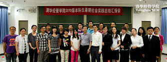 2012年9月13日下午,清华经管学院2010级本科生暑期社会实践总结汇报会在六教分两个会场举行。此次暑期实践活动项目协调人肖勇波教授、教学办主任朱玉杰教授、学生工作组何平教授,以及徐瑜青教授、黄京华教授、郭迅华教授、郭美新教授、孟岭生教授、罗婷教授、郑捷教授、刘霞教授、王蕾教授作为评委出席了汇报会。