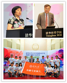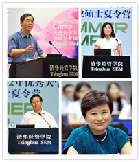 本次夏令营由清华经管学院与清华五道口金融学院联合举办,7月5日上午的开营仪式上,经管学院院长钱颖一首先发表开营致辞,欢迎大家参加清华金融专业硕士夏令营,并向营员们介绍了清华经管金融专业硕士项目的发展历程和培养目标。五道口金融学院院长吴晓灵做了“经世济民,为社会经济发展提供良好的金融服务”的主题报告,勉励金融学子牢记肩负的使命和责任。随后,钱颖一、吴晓灵、康飞宇、白重恩、廖理、康以同六位院长共同启动了“清华金融专业硕士项目”水晶球,向金融专业硕士项目授旗,并与学生代表合影留念。经管学院副院长郦金梁为营员做了题为“清华金融专业硕士教育”的说明会,通过深入浅出、亲切风趣的介绍并回答同学疑问,让在座学生进一步了解金融专业硕士的培养模式与职业发展前景。深圳研究生院院长康飞宇做了题为“金融、创新、科技:感受深圳清华的时代脉搏”的讲座,介绍了深研院的历史沿革、环境设施、师资队伍、科学研究等情况。在问答环节中,康飞宇院长还就深圳人才引进的优惠政策、深研院毕业生去向等回答了同学的提问。之后,五道口金融学院常务副院长廖理做了题为“金融素养与创业人生”的讲座。他认为,创业是报效祖国和实现人生价值的最佳方式之一,可以把个人爱好和事业发展结合起来,他还着重介绍了互联网金融,并指出五道口金融学院的互联网金融实验室正在积极探索基于互联网的金融服务模式。