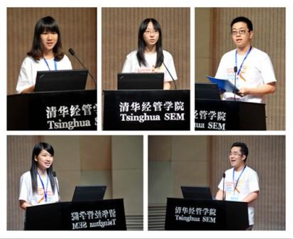 5位营员作为350余位参营同学的代表,深情回顾了夏令营四天生活的点点滴滴。来自北京大学的孙哲同学回忆了过去四天会计专业硕士项目的活动,充满眷恋之情,她说“夏令营即将结束,但是迈向清华园的奋斗步伐尚未停止”;来自吉林大学的赵闯同学与大家分享了他在夏令营期间的收获和成长,清华经管深深吸引他的有良好的发展平台、教授们的治学风范与人格魅力,还有同学们的优秀素质;来自对外经济贸易大学的蔡昀同学分享了她在夏令营期间的所见所闻以及如何激发了她梳理人生的远大志向;来自西南财经大学的陈戴希同学谈到她的最深感触:经济学项目浓厚的学术氛围、夏令营筹办老师的细心负责与志愿者同学的辛苦付出;来自清华电机系的杨若鑫同学将朱镕基老院长的题词赠与大家共勉——“为学在严,严格认真,严谨求实,严师可以出高徒;为人要正,正大光明,正直清廉,正己然后正人”!