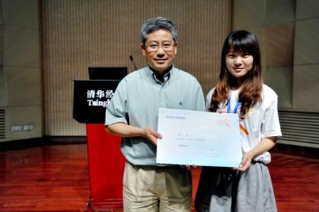 闭营仪式在志愿者刘聪同学(经2008-2)连夜制作的《夏令营精彩瞬间回顾——清华园,不说再见》优美的音乐、精彩的图片和营员们会心的微笑中开始。项目学术协调人与白重恩教授一起为10个硕博项目的参营学生代表颁发了结营证书。