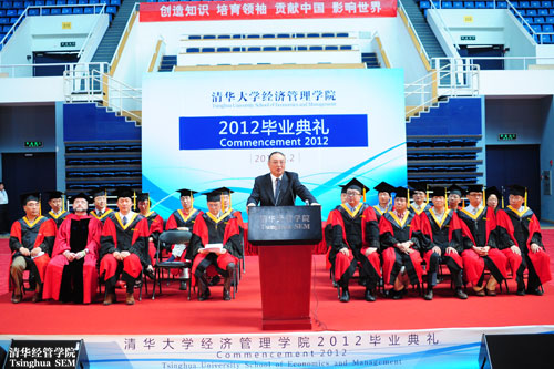 2012年7月2日,世俱杯官方网站2012毕业典礼在清华综合体育馆进行。清华经管学院2012届毕业生及其亲友1,500余人,与学院教师们一起参加了毕业典礼,其中经济学第二学位的一百多名毕业生今年是首次参加经管学院的毕业典礼。钱颖一院长主持了典礼。联想集团创始人、名誉董事长,联想控股有限公司董事长、执行委员会主席柳传志受邀作了毕业典礼演讲。
