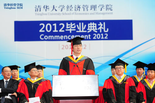 我是经管学院管理科学与工程系博士生窦一凡,和在座的许多研究生同学一样,这是我第二次参加经管学院的毕业典礼,相比于本科,博士毕业不仅是学位服颜色的变化,更是标志着自己完成了人生道路上一段意义特殊的旅程。如果说本科毕业最让人留恋的是丰富多彩的校园生活,那么博士毕业时最难以忘怀的,则是在科研工作当中度过的日日夜夜。回首五年来的点点滴滴,在我们紧张忙碌又略显单调的学习生活当中,总有一些人和事,令我们尤为感激。