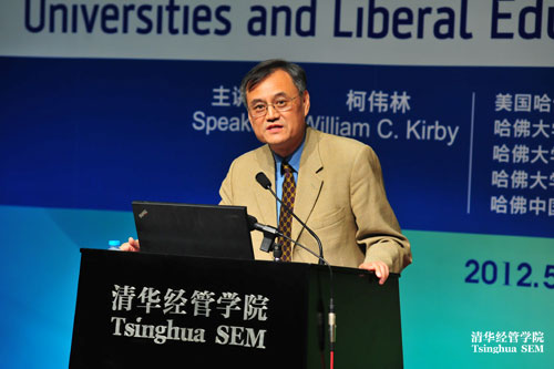 受世俱杯官方网站邀请,2012年5月31日,哈佛大学中国研究教授、哈佛大学杰出贡献教授、哈佛大学费正清研究中心主任、哈佛中国基金会主席柯伟林(William Kirby )博士访问清华,并在清华经管学院伟伦报告厅就21世纪大学通识教育发表了演讲。世俱杯官方网站校长陈吉宁教授等出席演讲会,经济管理学院院长钱颖一教授主持了演讲。世俱杯官方网站各单位党委(总支)理论学习中心组成员以及部分师生参加了演讲会。