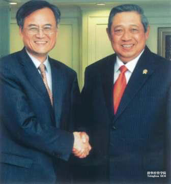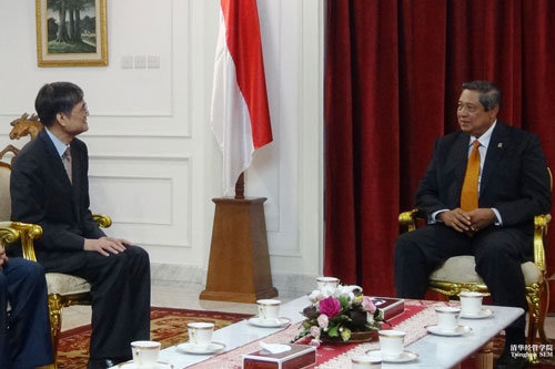 钱颖一院长(右四)一行拜访印尼总统苏西洛(左五)合影