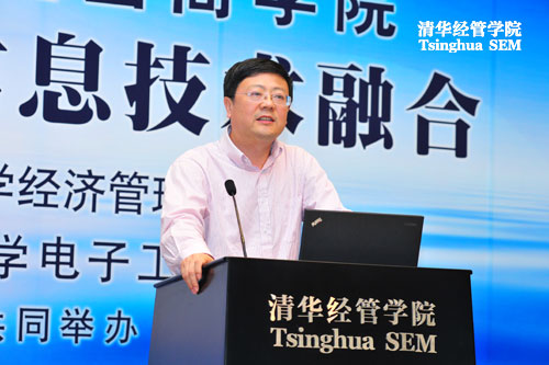 钱颖一院长在致辞中说,传统上商学院的管理教育是自成体系,自我封闭的,与其他的学院联系不多。但是伴随着经济全球化,特别是新技术的快速发展,新的商业模式要求管理教育要同信息技术工程,医学,设计等专业教育交融,培养出新一代的文理汇通,商工汇通的人才。不同的专业领域有不同的思维方式很正常,没有谁对谁错,但企业创新往往需要不同思维的碰撞和融合。管理学走出商学院同大学中的其他专业相融合,必将产生聚合力量,推动教育和研究的发展。这是大学中的商学院发展的趋势,也是它的重要优势。期望通过这次研讨会,能够开启经管学院与电子工程系长期的密切的合作。同时,也能为其他工科院系提供一个可供参考的模式。