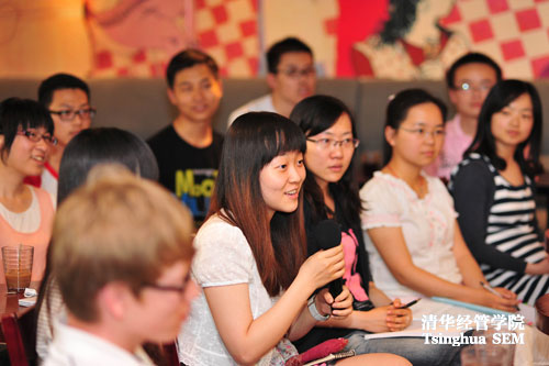 参加下午茶的同学与老师们随后展开了热烈的讨论。针对不少学生提出的学分积导向问题,老师们表示学院已经在不断降低它对于学生评价的影响,并且尝试着让评价体系更多元化。关于课程选择和就业前景问题,针对一些学生提出的 “make a living”与“make a difference”之间的矛盾关系时,老师们指出并非两者之间只能取一,关键是应该认真思考自己真正想要什么的问题。老师们还指出,同学们应该更加珍惜和更好利用学院提供的各种机会,更加主动地去挖掘自己的发展潜力。