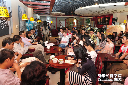 2012年5月7日下午,在经管学院舜德咖啡厅举行了本学期的“与院长共品下午茶”本科生专场。院长钱颖一、党委书记杨斌、副院长白重恩、本科学术协调人钟笑寒等多位老师与几十位四个年级的本科生进行了广泛且深入的交流,话题集中在学院的本科教育改革。