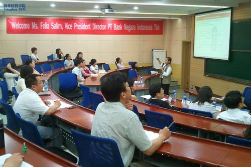 5月29日,印尼国家银行副总裁Felia Salim女士在清华经管学院高级管理培训中心做了关于印度尼西亚宏观经济发展的报告。这是继钱颖一院长出访印尼后,高级管理培训中心与印尼商界的再一次高端交流互访。高级管理培训中心主任薛镭及学院合作发展办公室主任潘庆中等出席了Felia Salim女士的讲座。