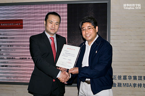 李梓境校友介绍了正信嘉华金融知本服务产业集团情况,并在发言中深情地说道,清华经管学院承载了他求学生涯中最重要的时光,尤其是金融MBA项目给他留下了宝贵财富,自己取得的成就离不开母校的培养,离不开老师和校友的长期支持。他也非常乐于在自己有能力的时候,为学院做贡献,以回报母校。