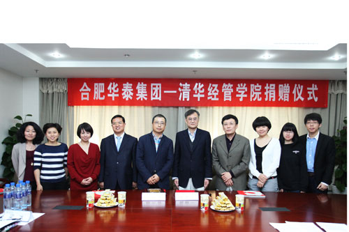 4月26日,“合肥华泰集团——清华经管学院”捐赠仪式在学院举行。合肥华泰集团股份有限公司董事长陈先保先生(EMBA2004)、洽洽食品股份有限公司副总裁李振武先生(EMBA2012)、洽洽食品股份有限公司品牌部副总经理李会芬女士、清华经管学院院长钱颖一教授、合作发展办主任潘庆中老师等出席捐赠仪式。