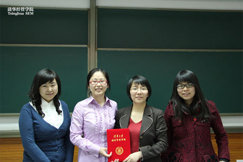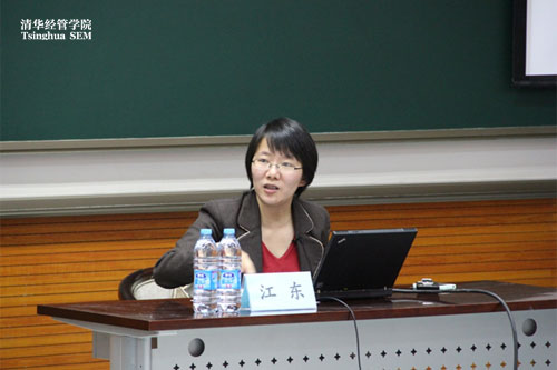 2012年4月12日,中国银行总行助理总经理、清华校友江东女士应邀出席清华会计高端论坛,发表了题为“商业银行会计实践”的演讲。会计专业硕士项目主任罗玫教授主持了论坛。